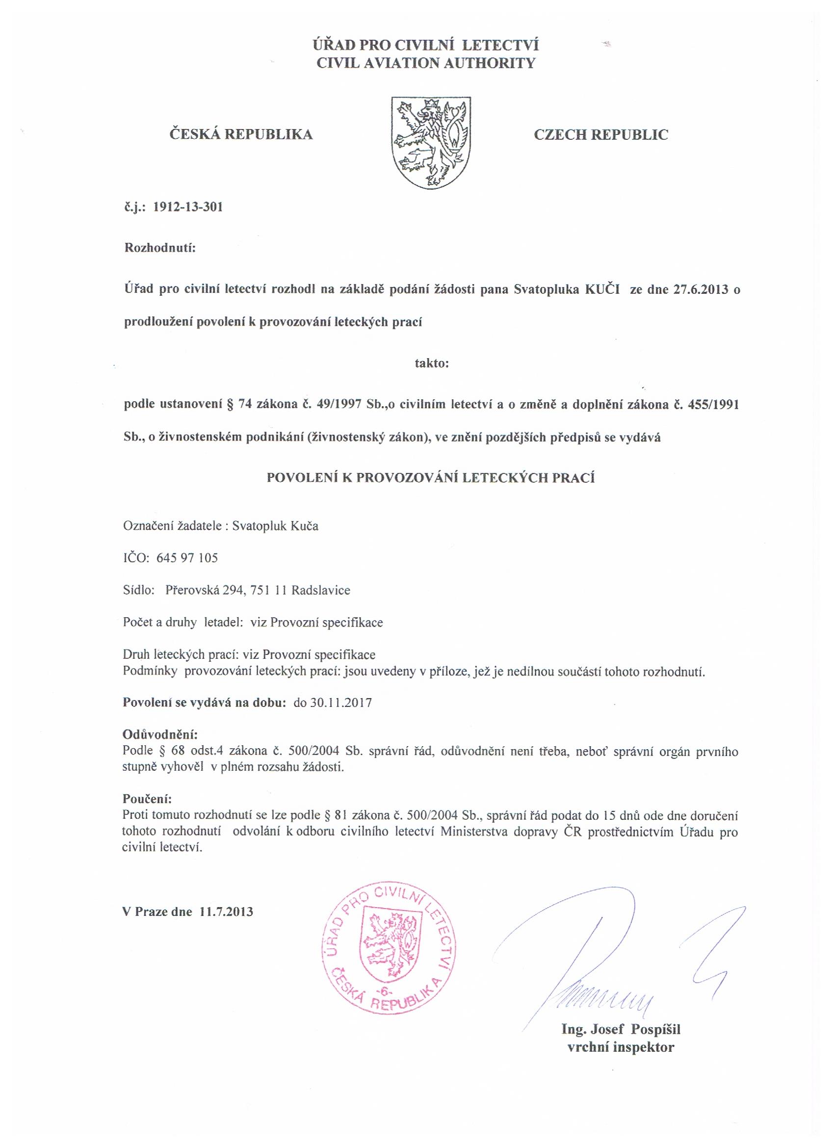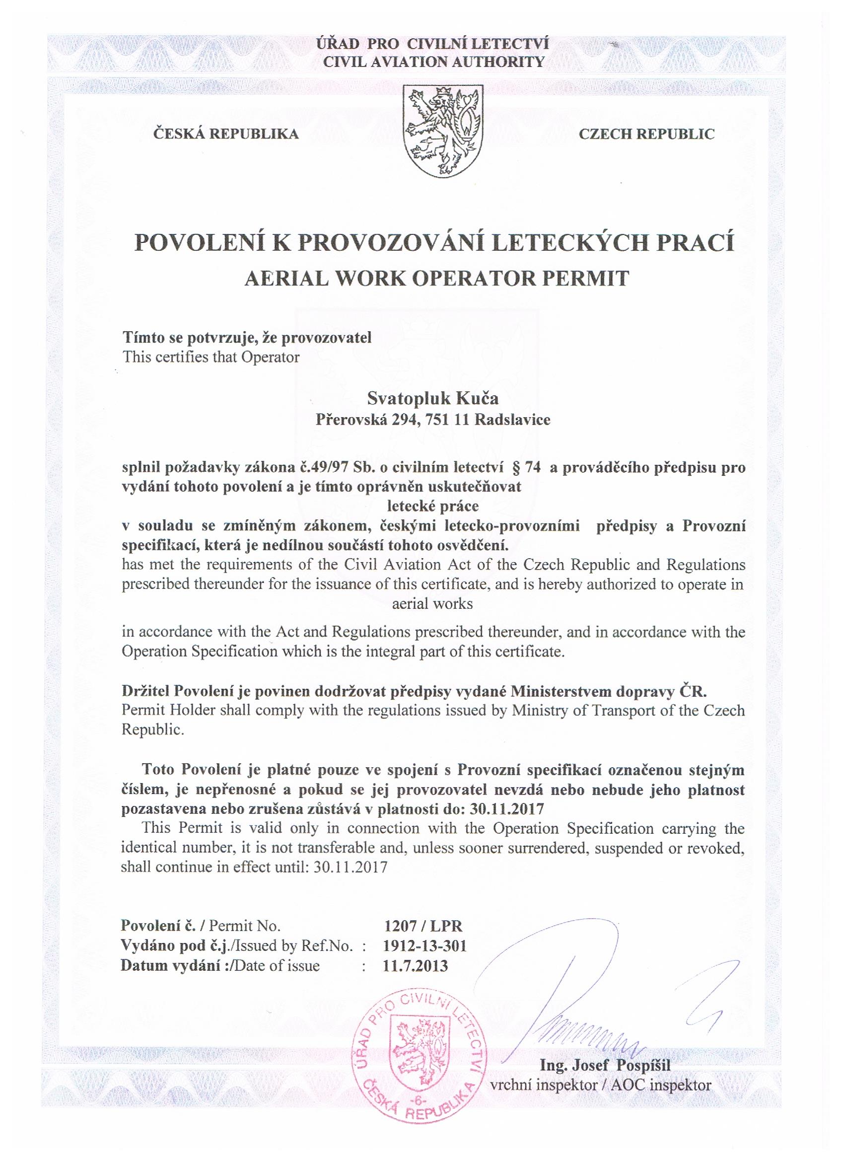 Povolení k provozování leteckých prací